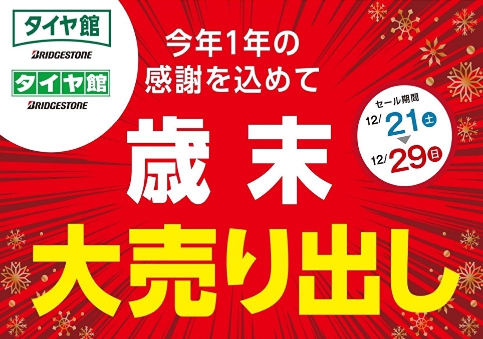 タイヤ館のお得なセールイベント歳末大売り出しがはじまりますっ!!