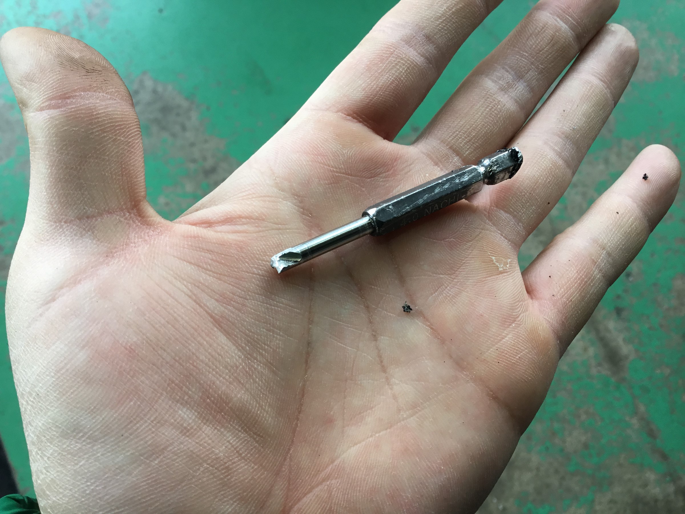 この金属片は・・・ドリルの刃・・・?