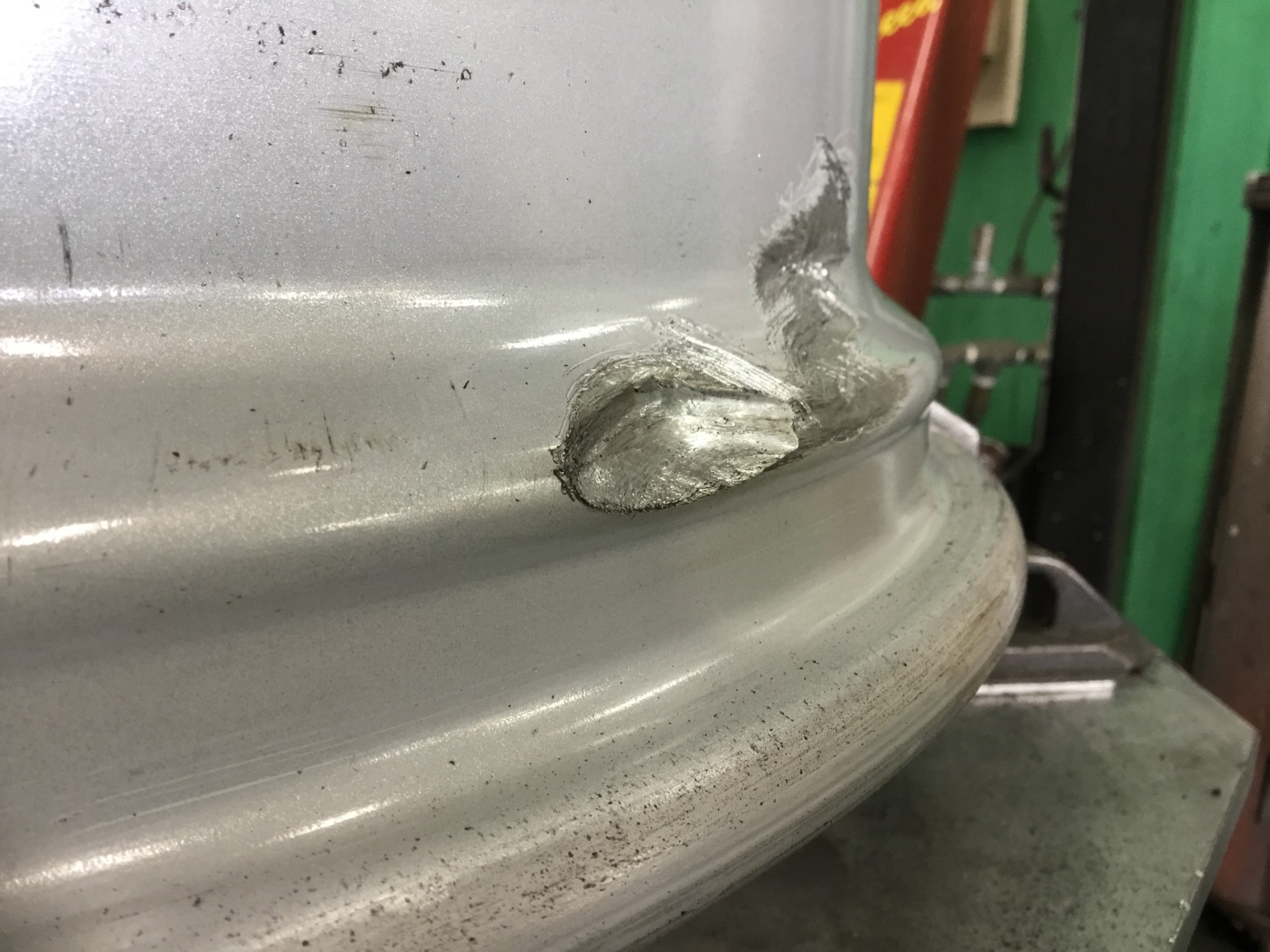 実は長い異物などを踏んでしまったタイヤですと、稀にこういったようにホイールの内部にまで損傷を与えてしまう例があります(;´・д・)