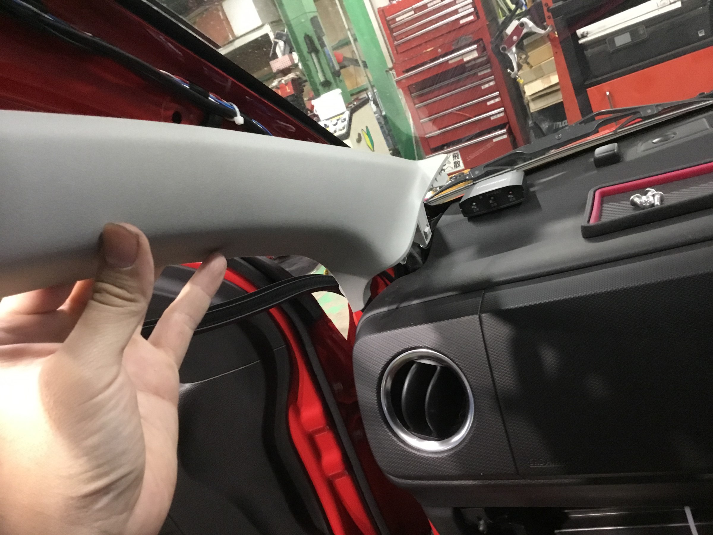 助手席側Aピラーカバーも外して、配線を隠しながら通して・・・