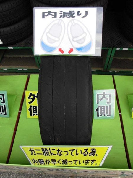 そのままにしておくと、タイヤの内側だったり外側ばっかりが減ってしまいます。