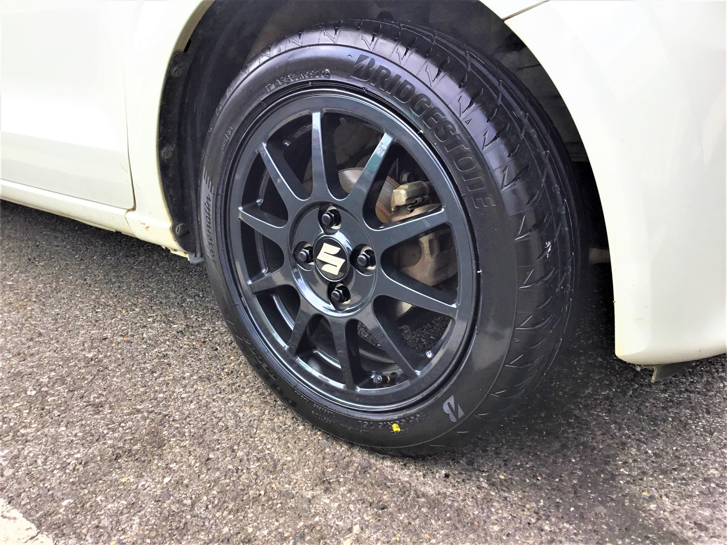 元々ついていたホイールは15x45サイズなのですが、ワークス純正は15x5サイズなので0.5インチ幅が広くなります( ,,`・ ω´・)