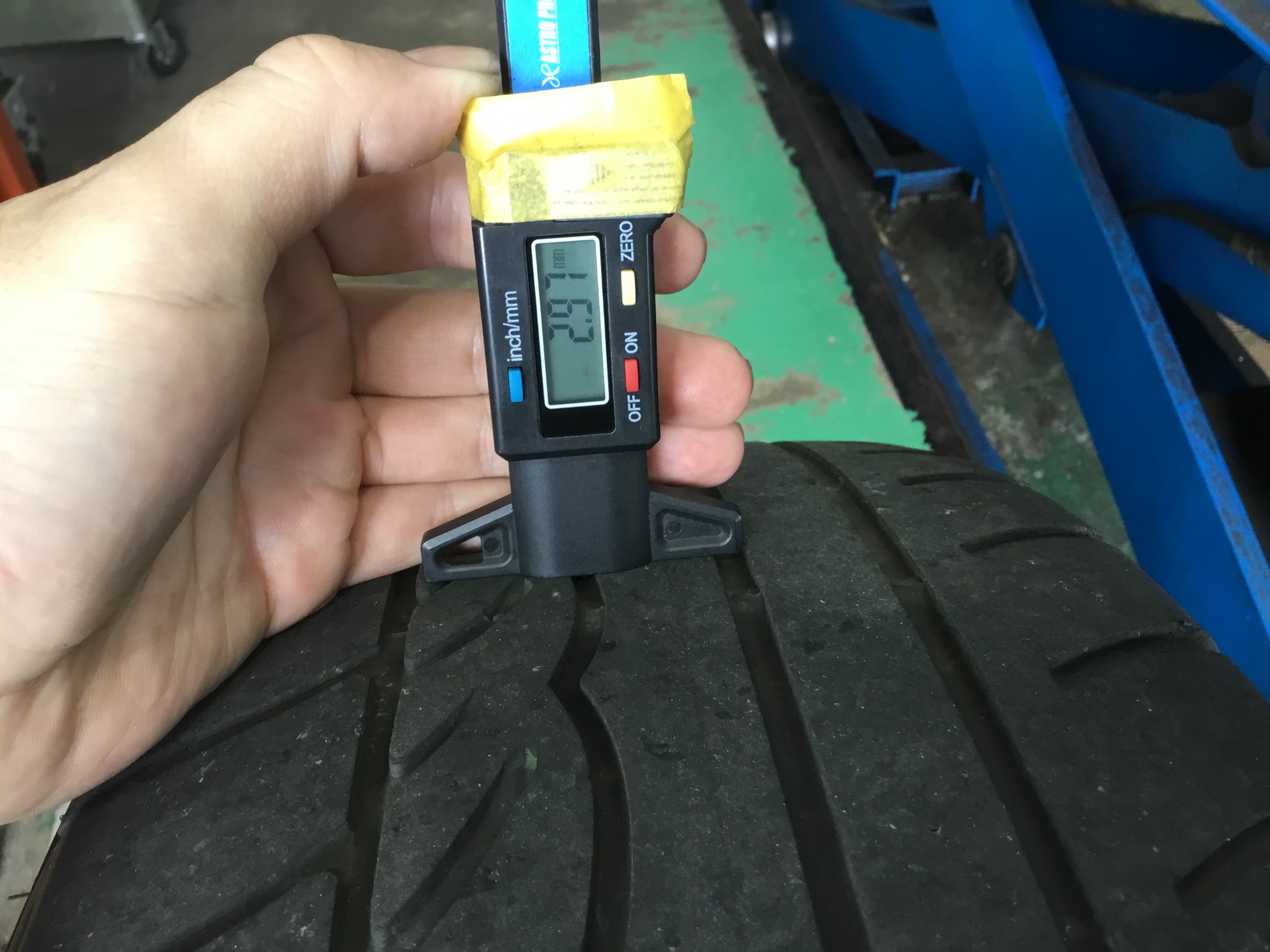 新品のタイヤのミゾは7~8mmほどなのですが、もともと装着されていたタイヤは3mmを下回る2.97mm!