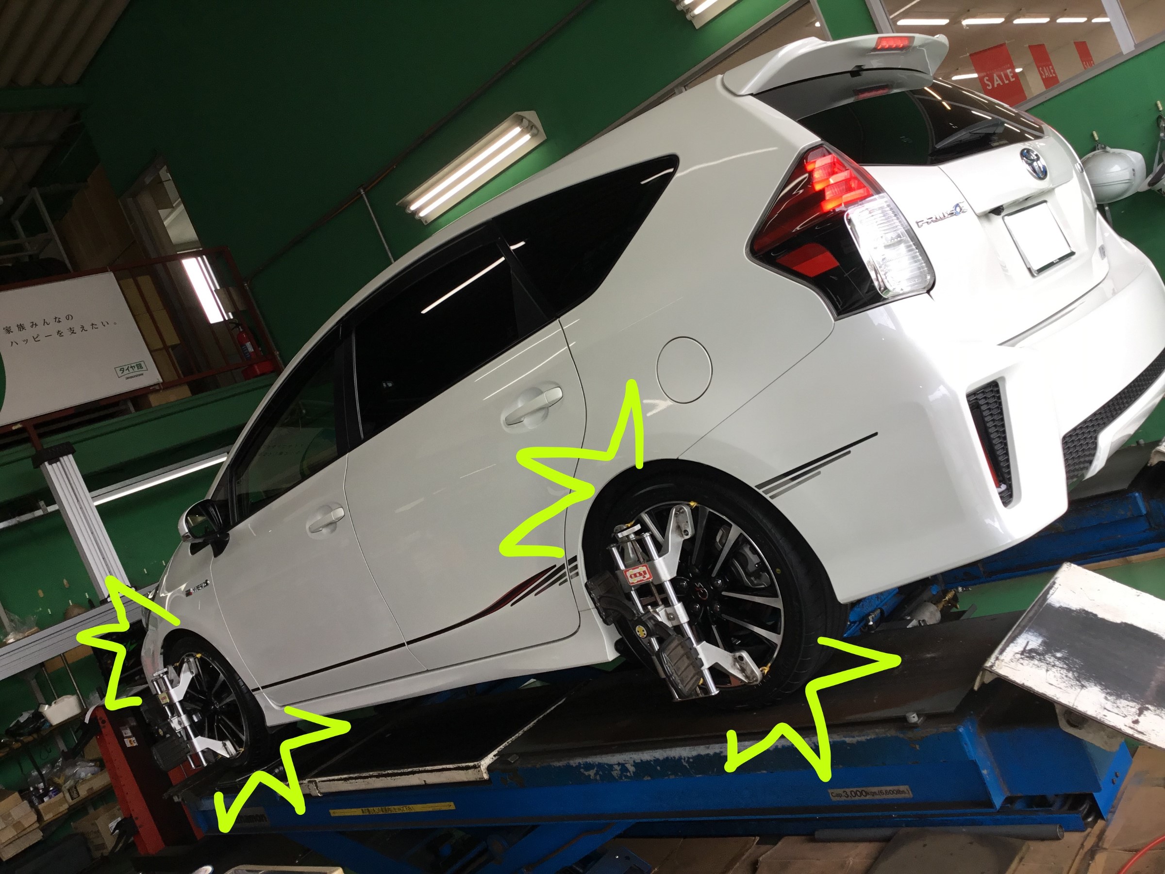 ZVW40型プリウスα G´s、タイヤ交換&アライメント調整!