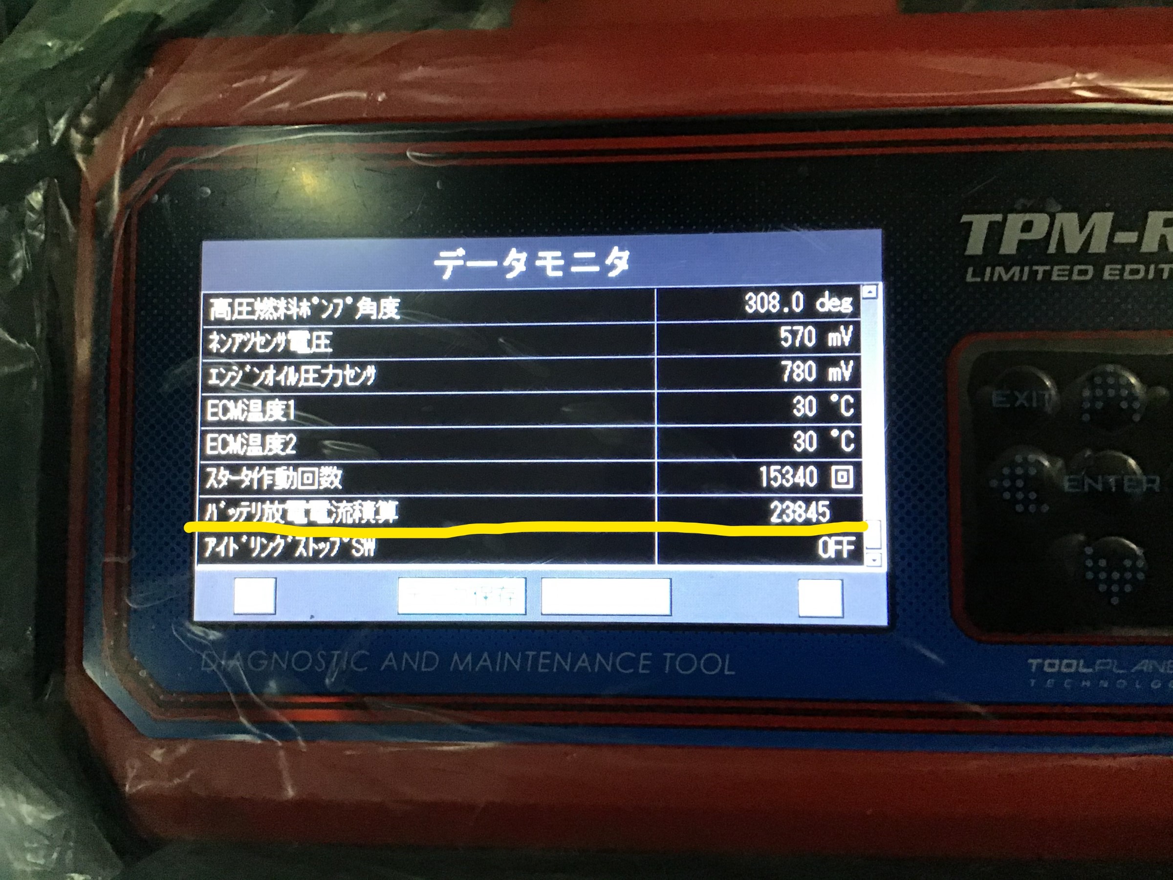 黄色い線が引いてある所、「バッテリー放電電流積算値」という項目があります!!