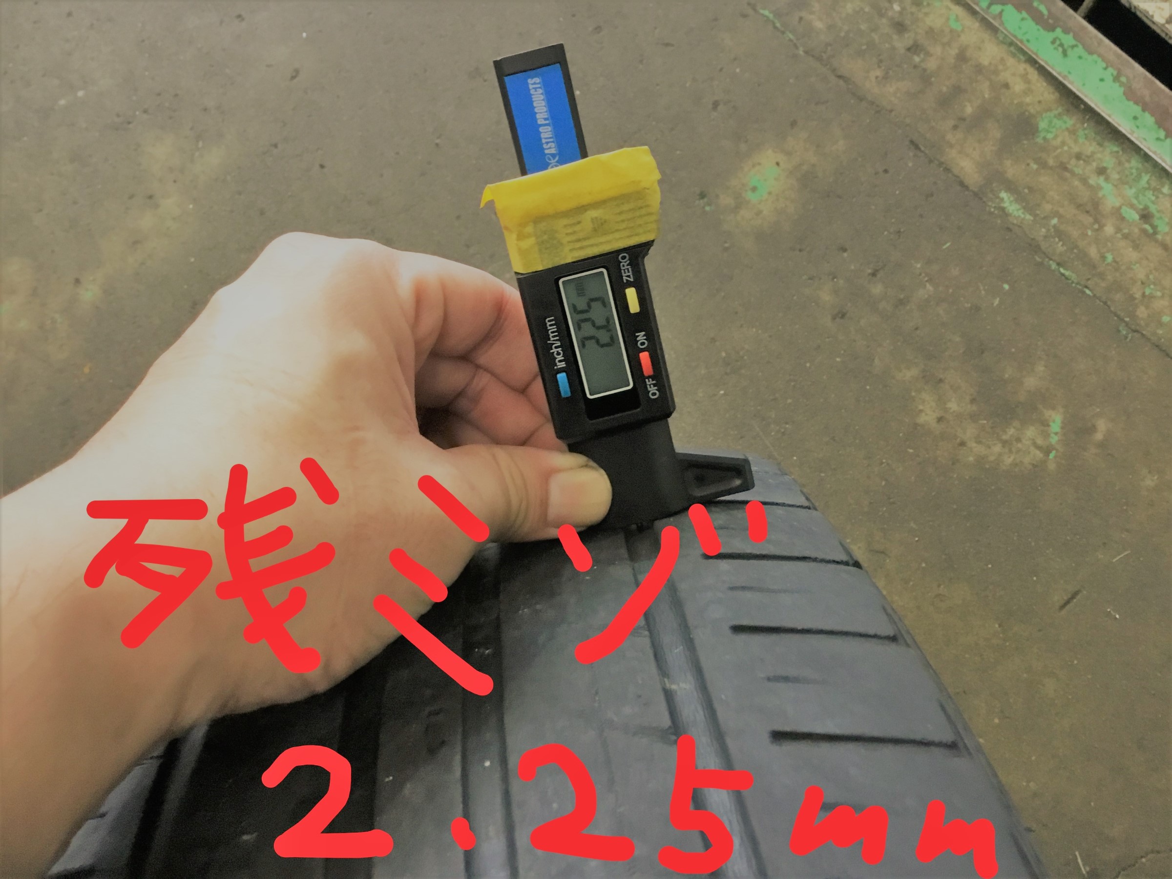 今まで使用されていたタイヤは、残り溝が2.25mm!