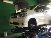 車検でお預かりしているヴォクシーのタイヤ交換! 交換タイヤはブリヂストンの孫会社にあたるデイトン社のDT30! お財布に優しい価格で交換できるタイヤとなっておりますので、あまりお車に乗られない方に人気のタイヤです♪