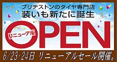 リニューアルセールまであと4日となりました!6/23~6/24の二日間は、タイヤをお買い上げの方に対象景品をプレゼント!!お買い上げ金額に応じて様々な景品をご用意していますのでご期待ください! その他のイベントも随時ご連絡させていただきます!