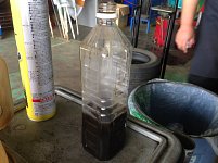 コチラのペットボトルに入った黒い液体ですが、これはお客様の軽自動車から抜いた「全量」のオイルです! 1リットルボトルなので・・・およそ300~400mlほどの量でしょうか? 規定量は3Lほどのお車なので1/10ほどの量しか入っていませんΣ(´Д` )少ないオイルで潤滑していたためにオイル汚れも尋常...