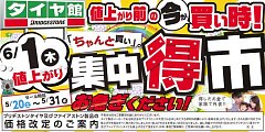 明日5/31はセール最終日! タイヤの値上がり前日となります! 普段ですと水曜日は定休日ですが明日は営業しておりますのでドシドシご来店ください!!ヾ(^▽^ヾ)