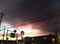 夕方5時ちょい過ぎ、ふと上を見上げるとお空が真っ赤!!Σ(・ω・`;) 写真だとうまく写っていませんが、黒く見える雲が真っ赤に照らされていて怪しい雰囲気・・・(;・∀・)