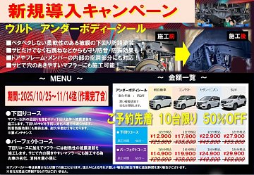 ウルト下廻りアンダーシール 新規導入半額キャンペーン開催!!