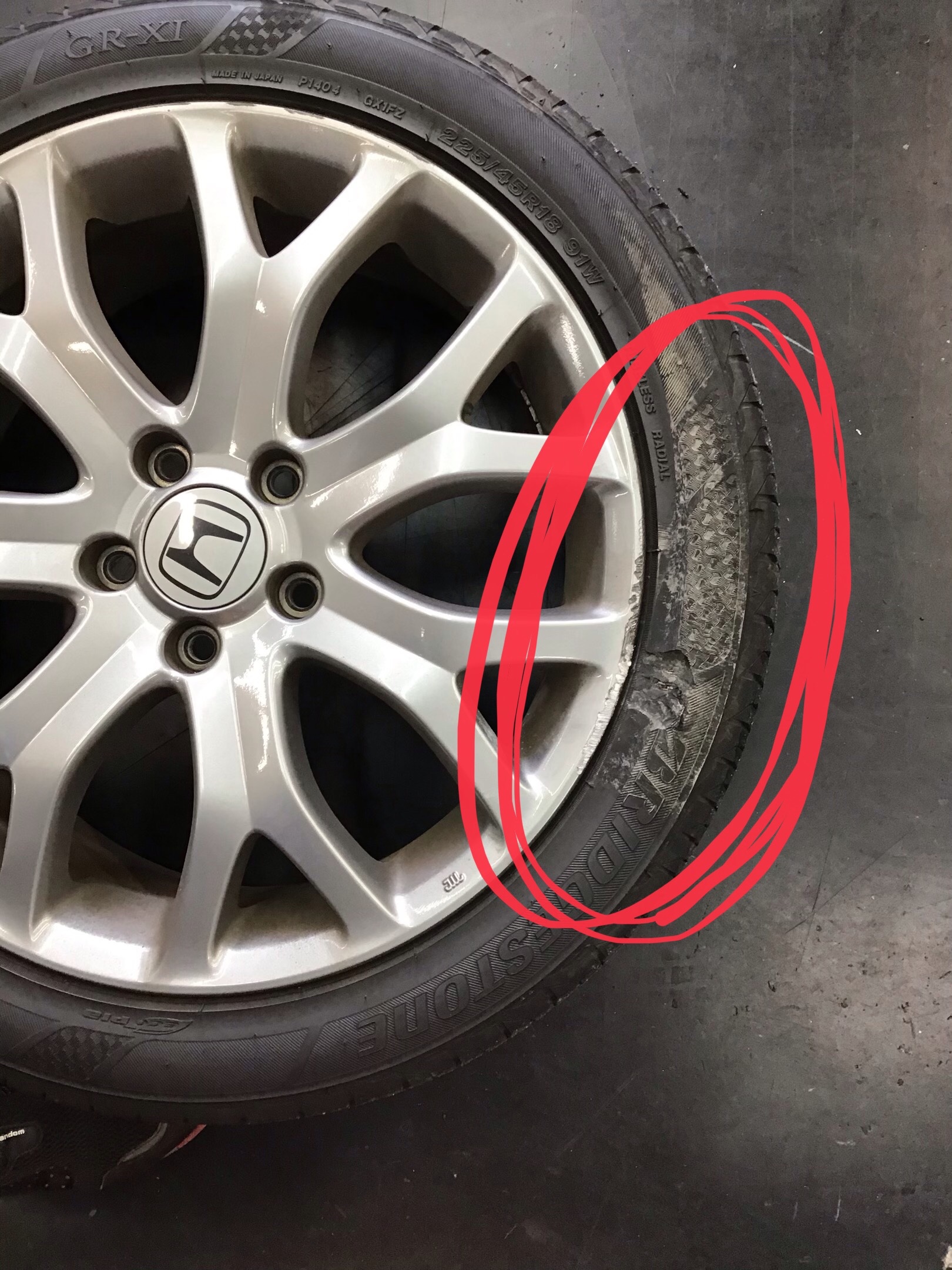縁石に右側タイヤをぶつけてしまい、タイヤに傷が・・・