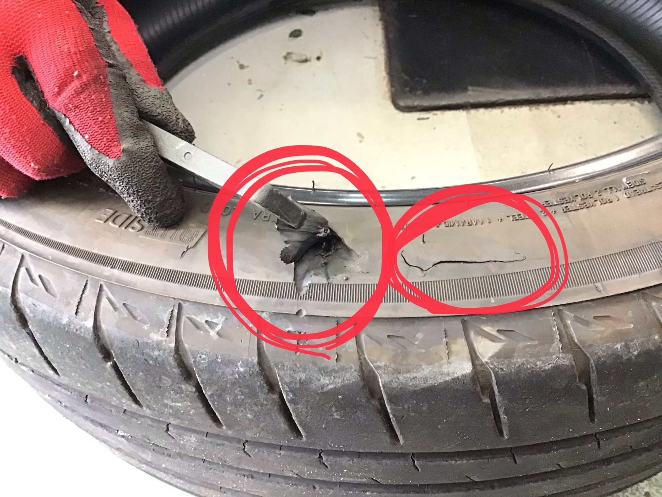 タイヤの側面がえぐれている!!!!