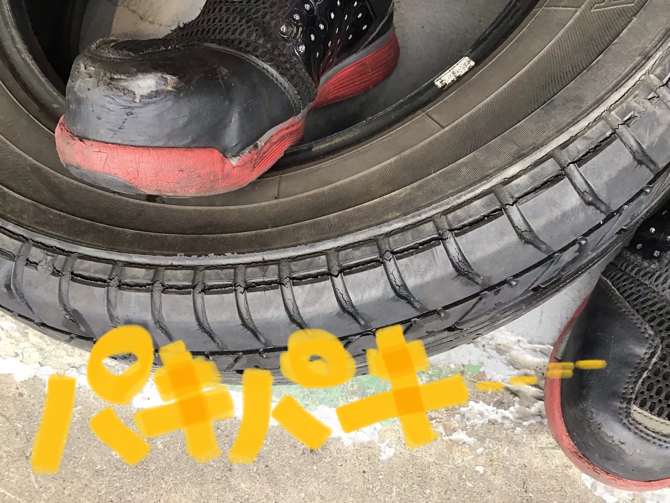 そして、タイヤもご覧の通り…パリパリ〜!!!
