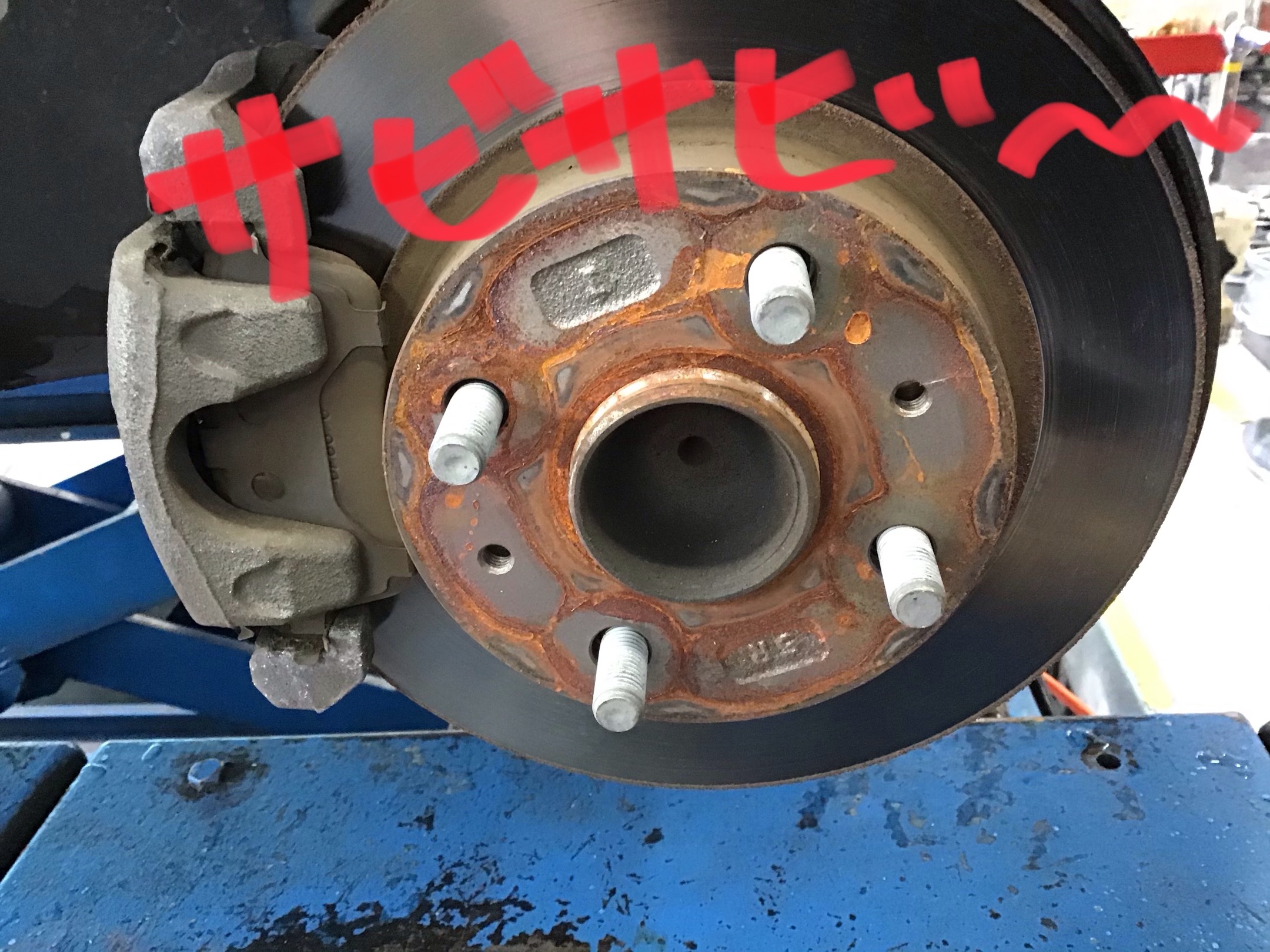 タイヤを外すと、ハブもサビサビ〜(^◇^;)
