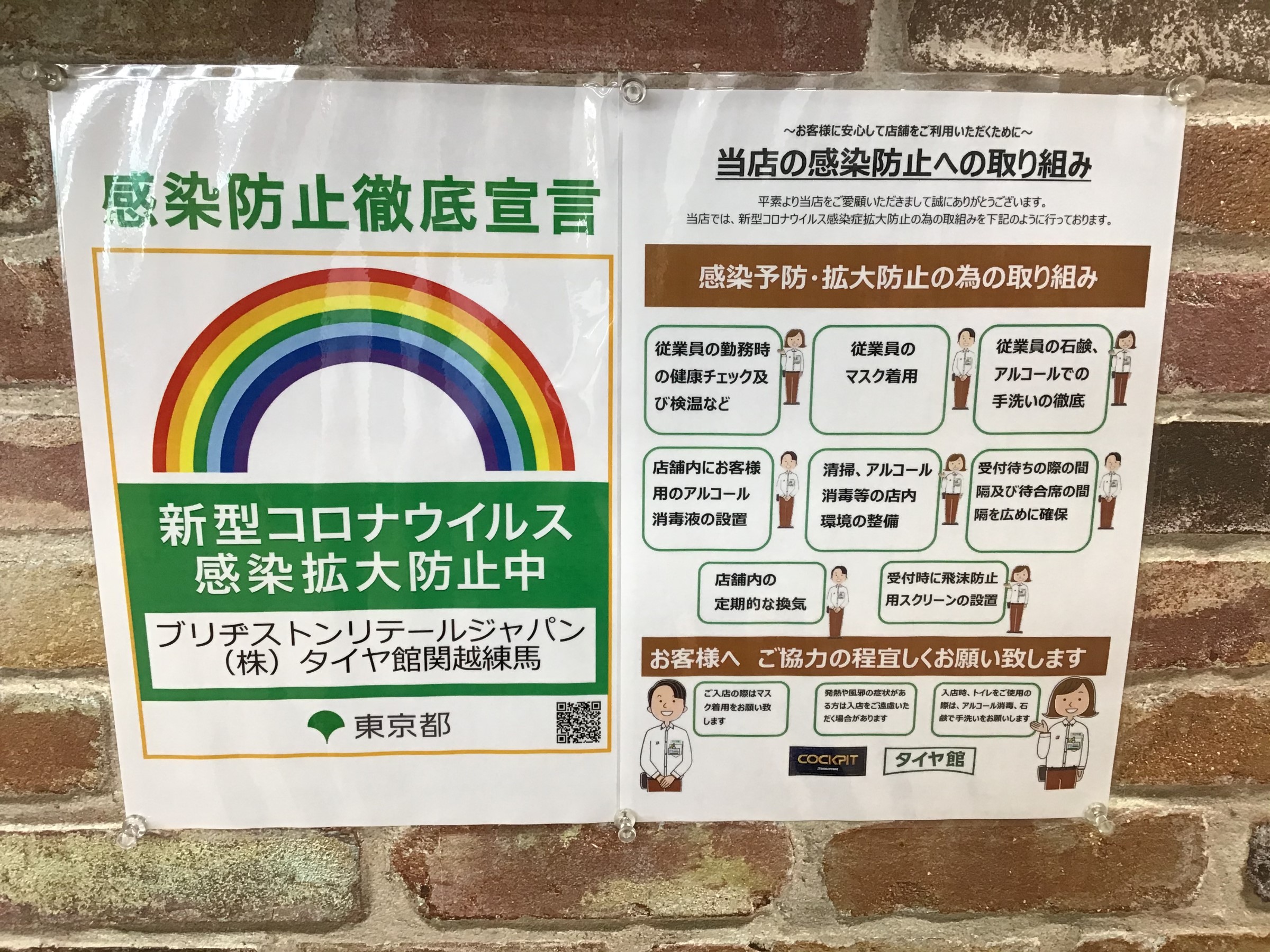新型コロナ感染症防止対策行っております。 ポスト 2020年7月30日 タイヤ館も東京都の『 感染防止徹底宣言ステッカー 』を貼らせて頂きました。 従業員はマスク、手洗いなども実施し予防に努めさせていただいております。 ご来店の際には、マスク着用にてご利用頂きますよう宜しくお願い致します。 除菌スプレーなども常備しておりますので、活用してください。 カテゴリ:お知らせ