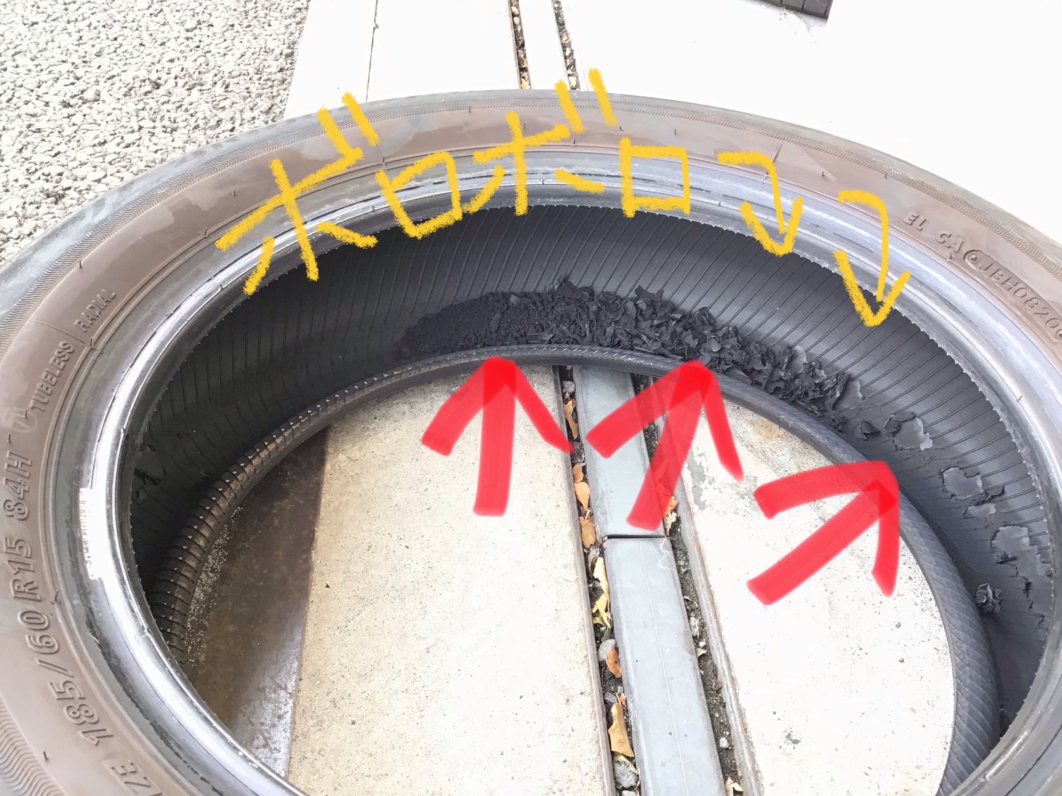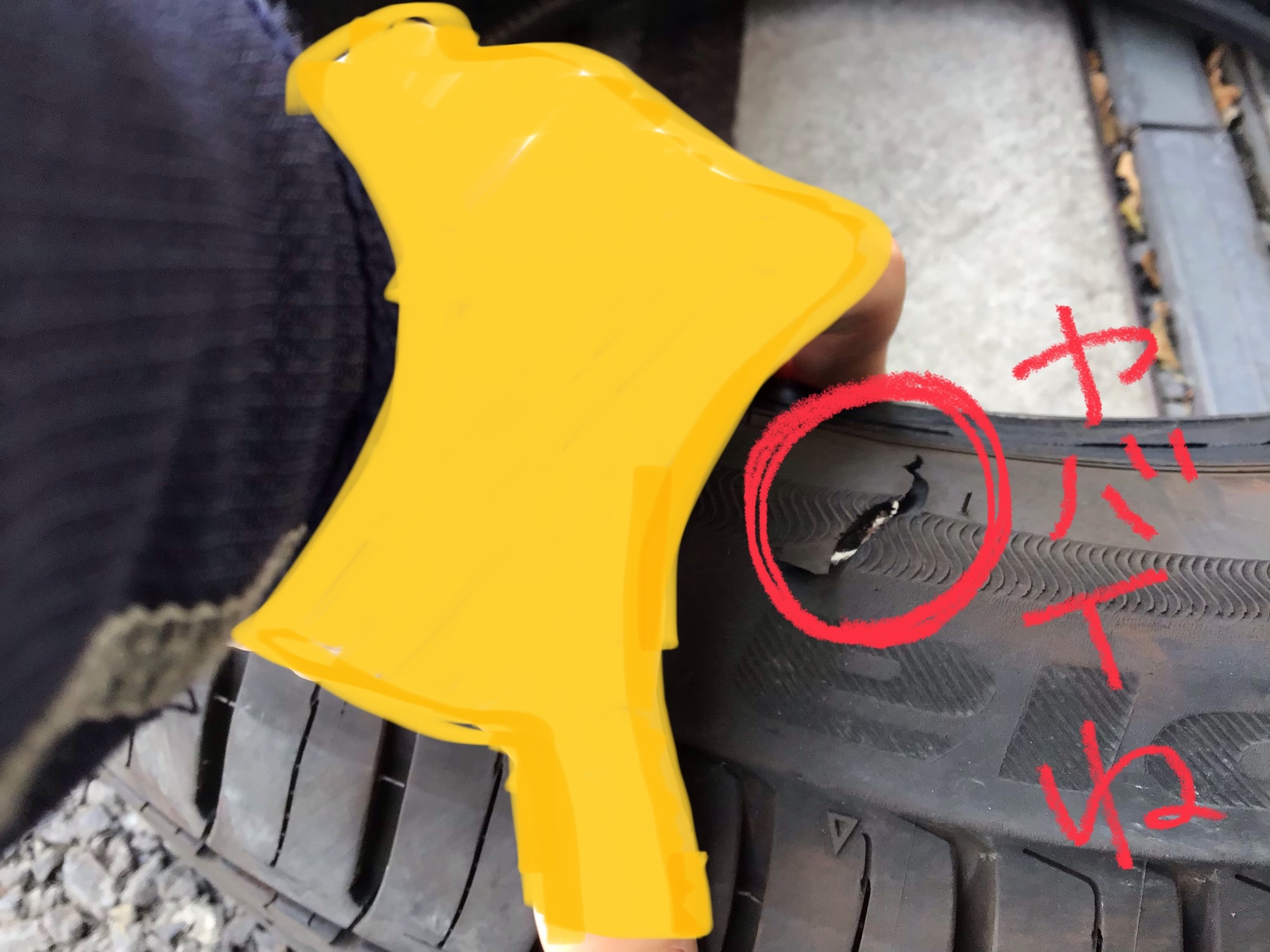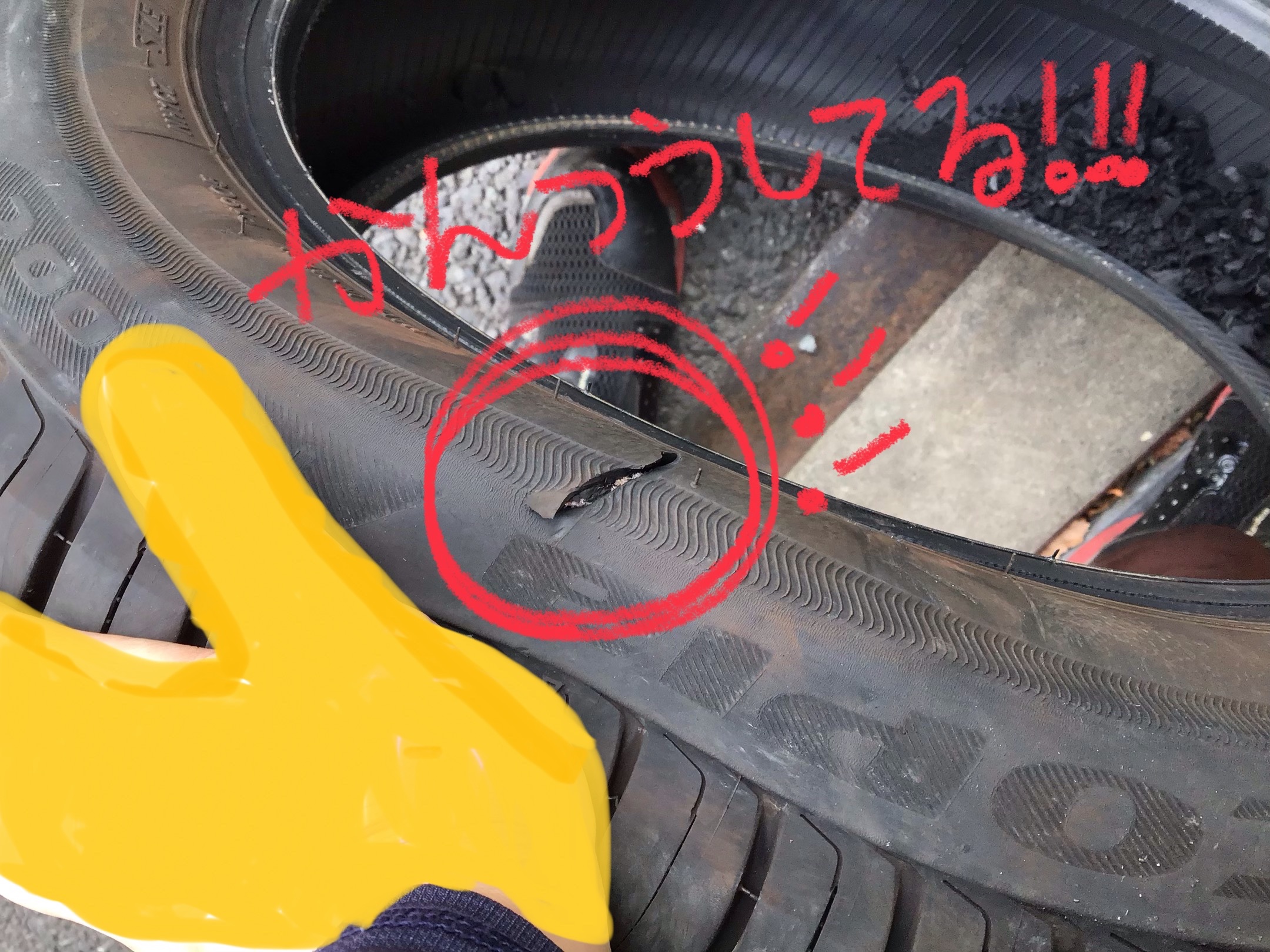 タイヤに大ダメージ・・・