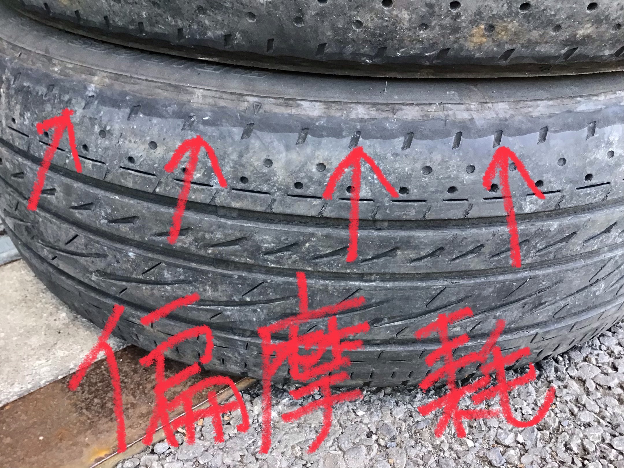 ↓タイヤの偏摩耗を見て