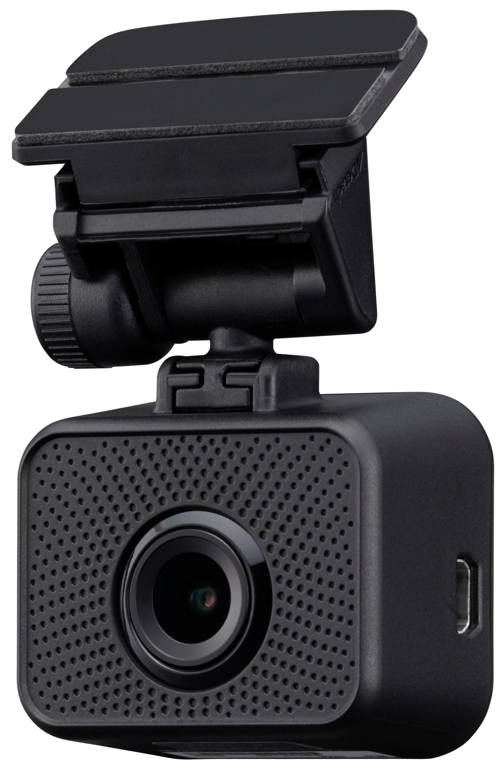 Full HD 200万画素の前後2カメラで業界最小クラス。フロント視野角140°、リヤ視野角145°。明暗差を補正し、白飛びしないHDRを搭載(フロントのみ)。大容量の32GB microSDHCカード同梱。安全運転支援機能、後続車接近お知らせ・録画機能搭載。