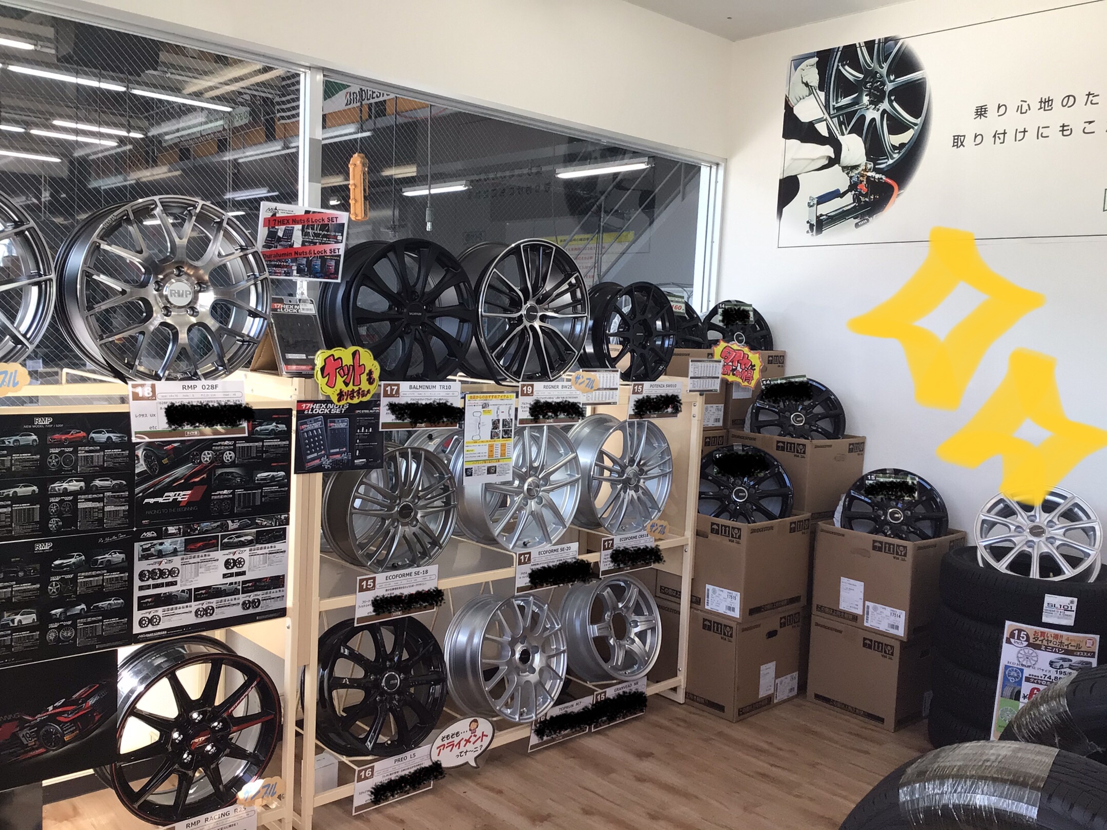 ホイールの展示が完成しました~!!!!!!