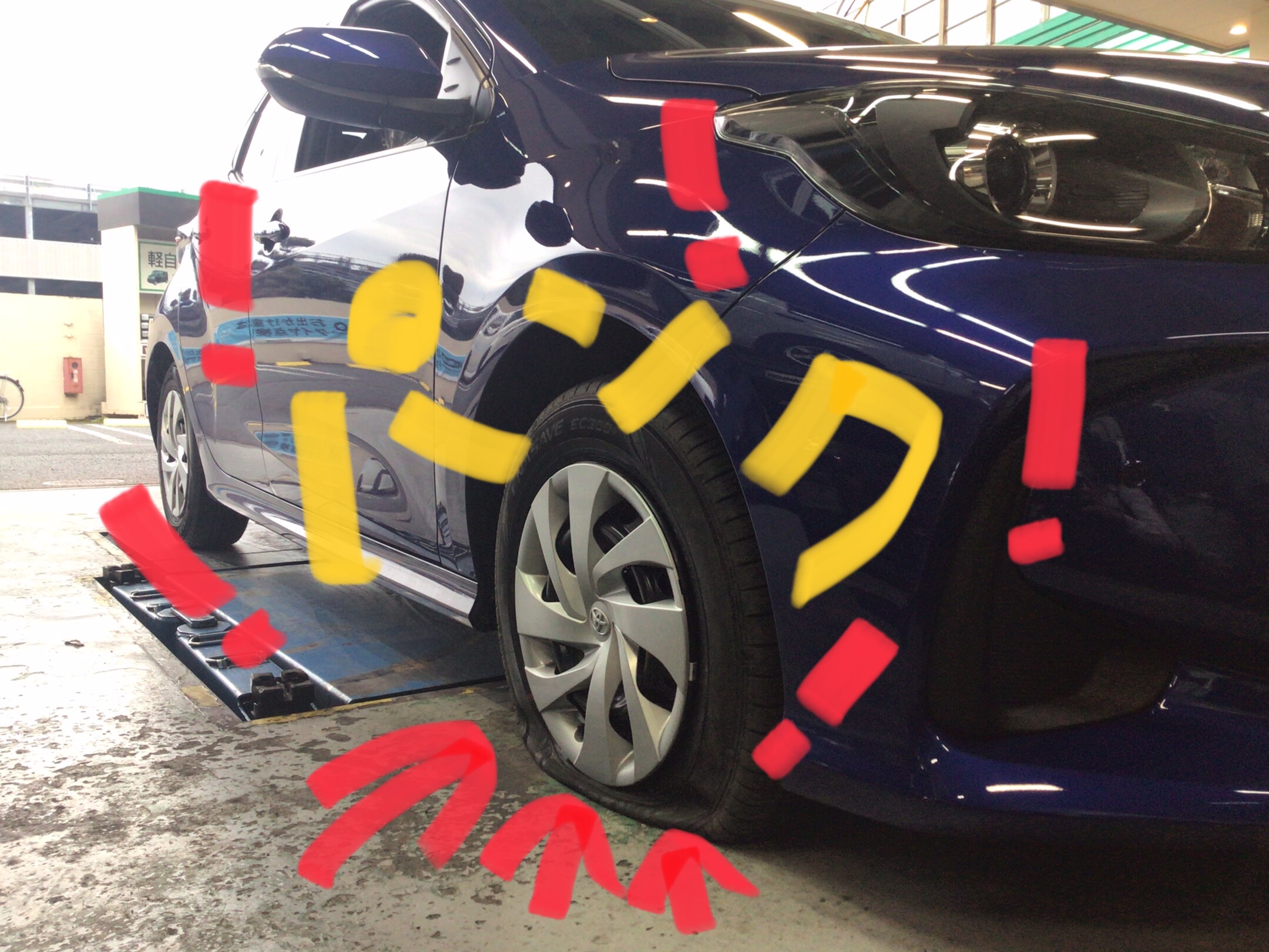 パンクして、タイヤ交換しないと・・・