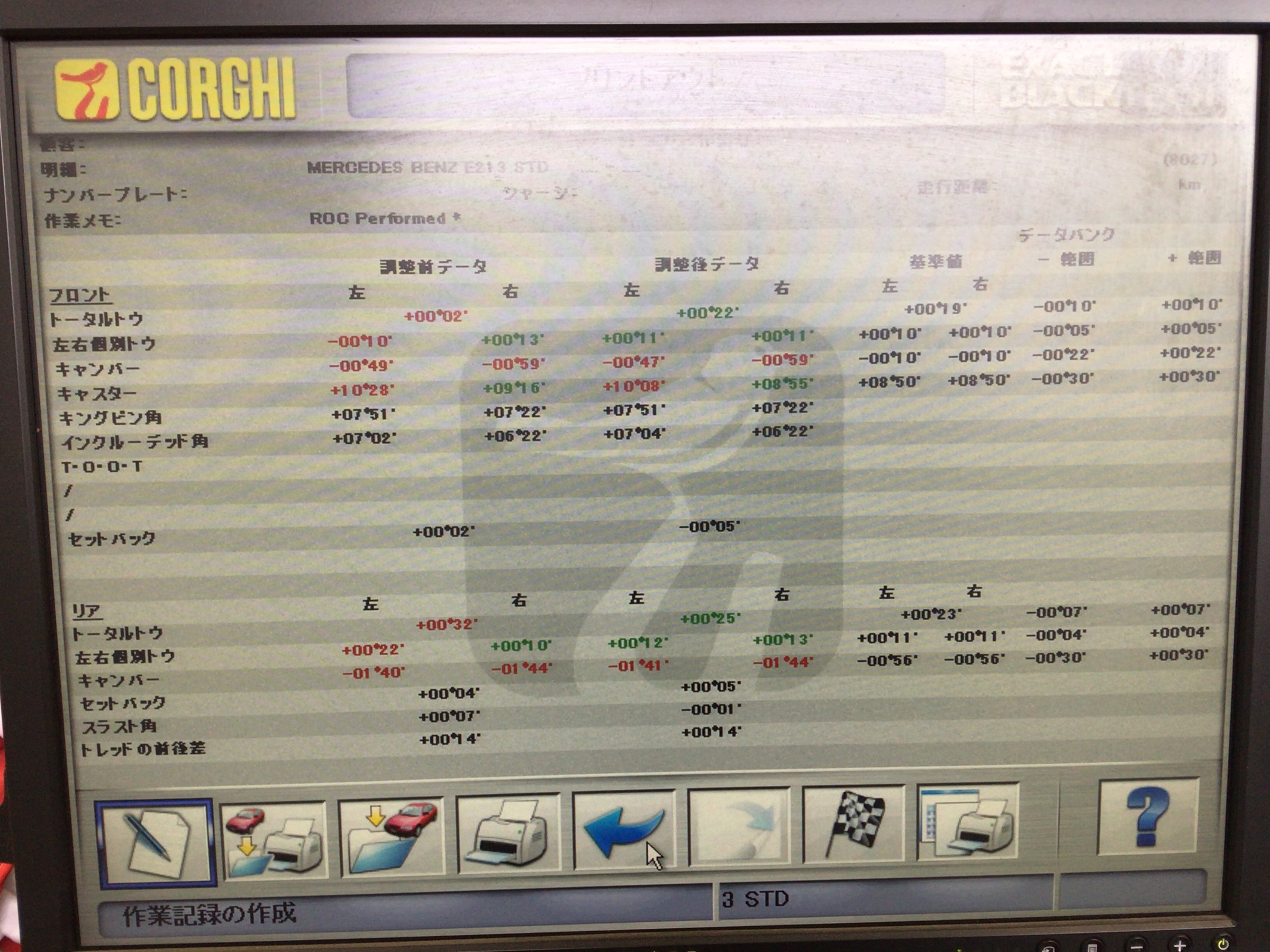 今回はアライメント長持ちパックに加入していただいたので、定期なアライメント測定が無料です。タイヤ交換時期にアライメント作業もオススメです。