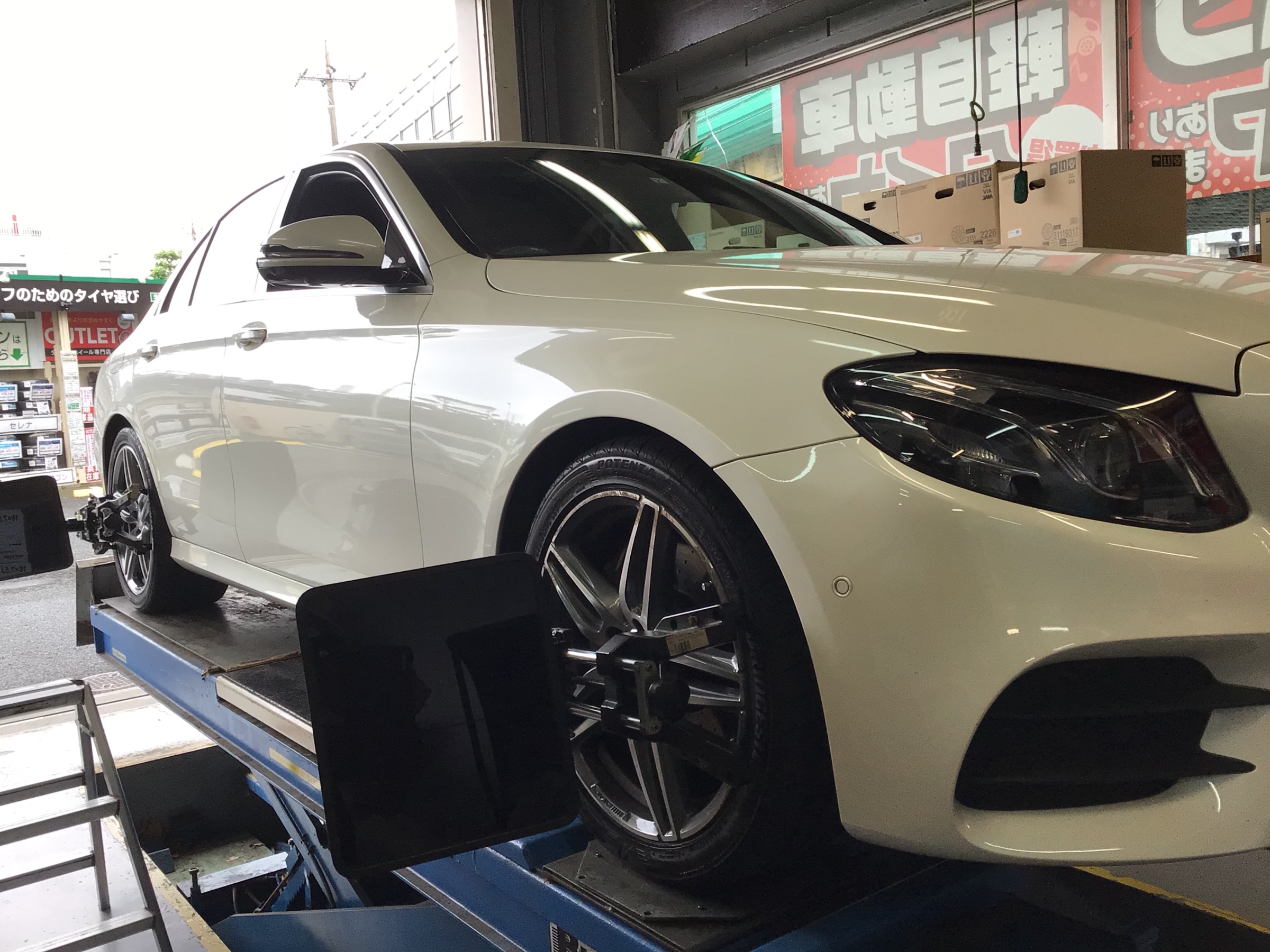 Eクラス W213 タイヤ交換アライメント作業しました。当店はじめてのご来店のお客様です。