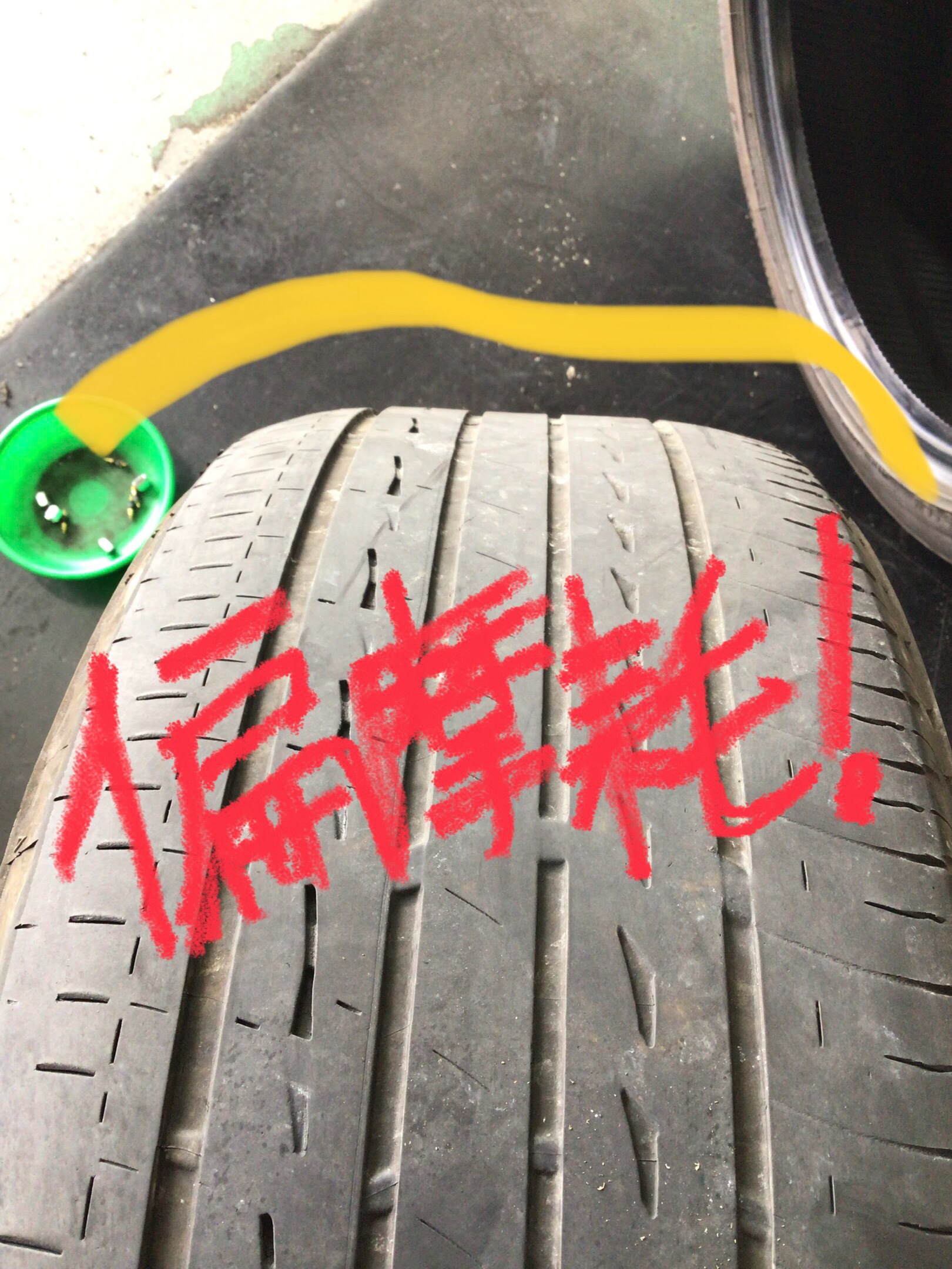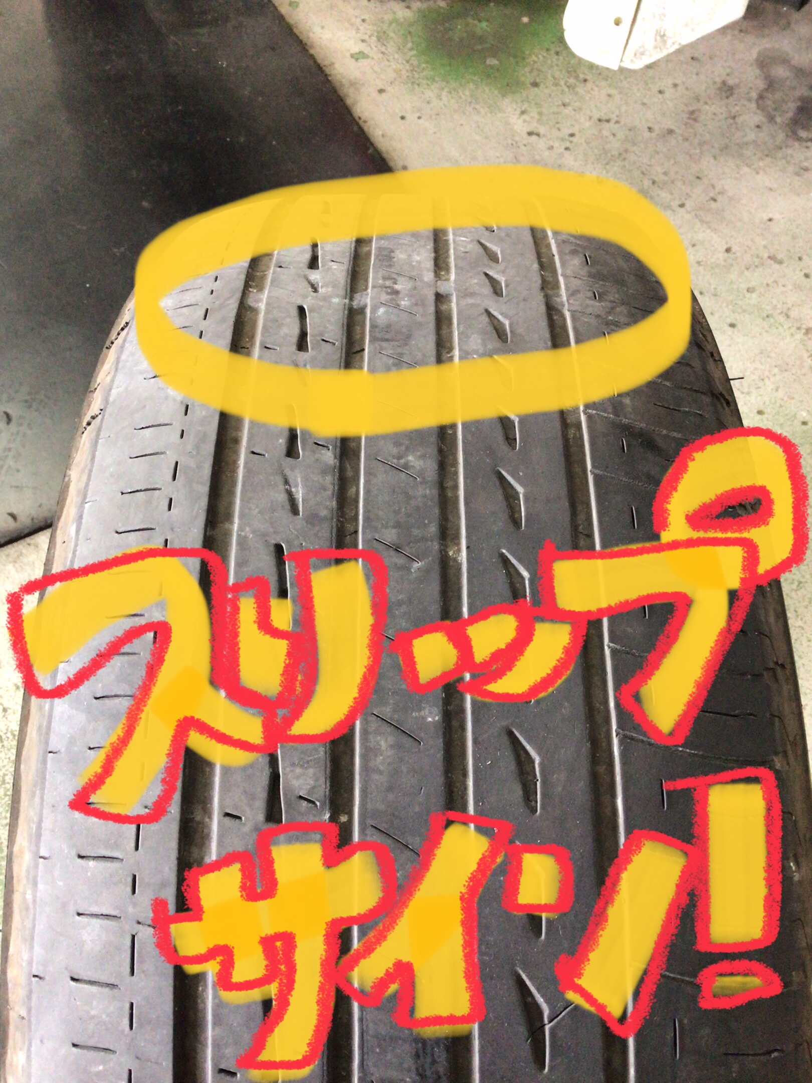 タイヤの接地面が斜めになってる~(-_-;)