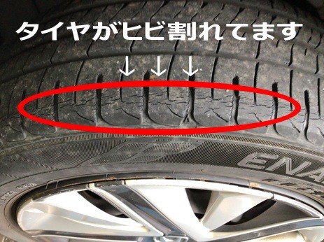 タイヤ全体的に、ヒビ割れがでてました。