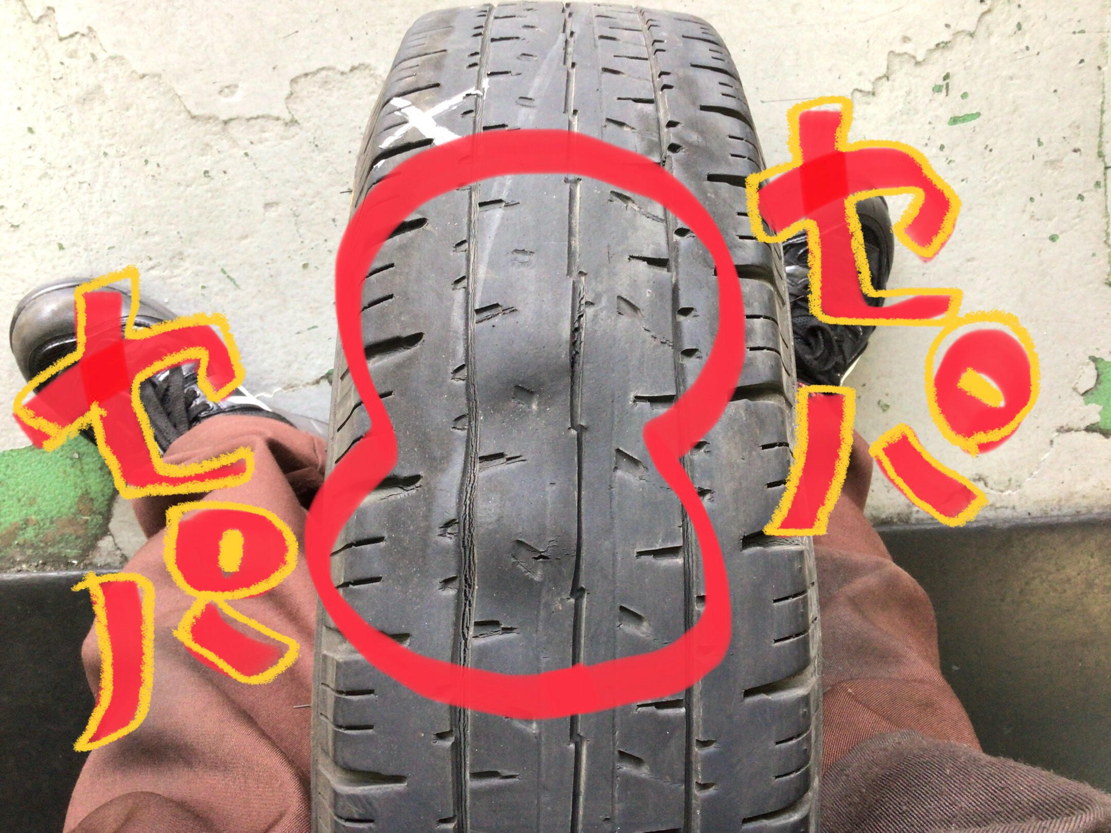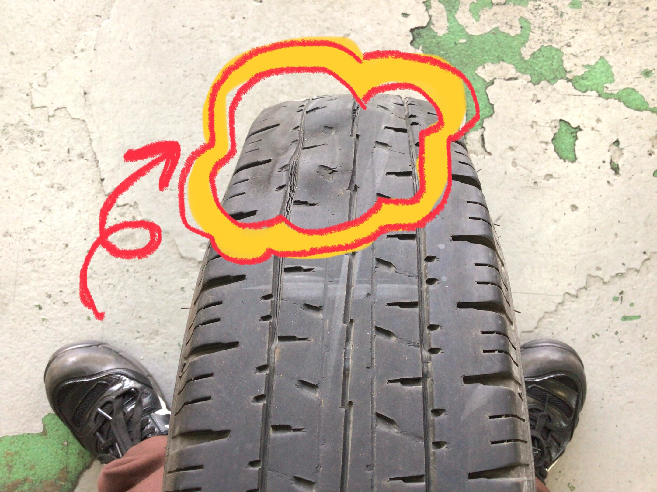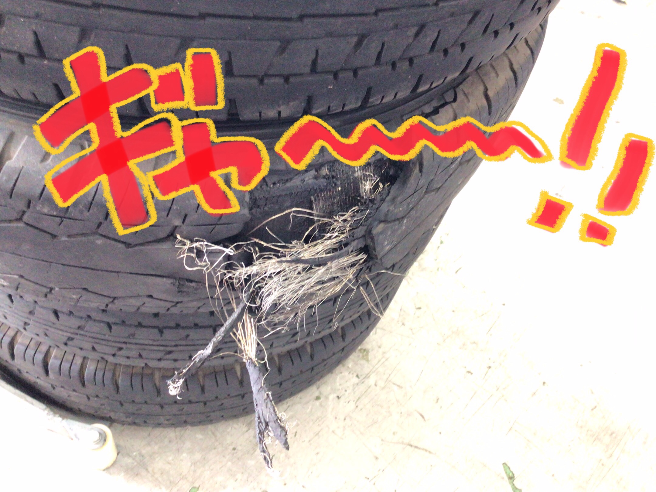 内部で切れてしまい、タイヤが変形して