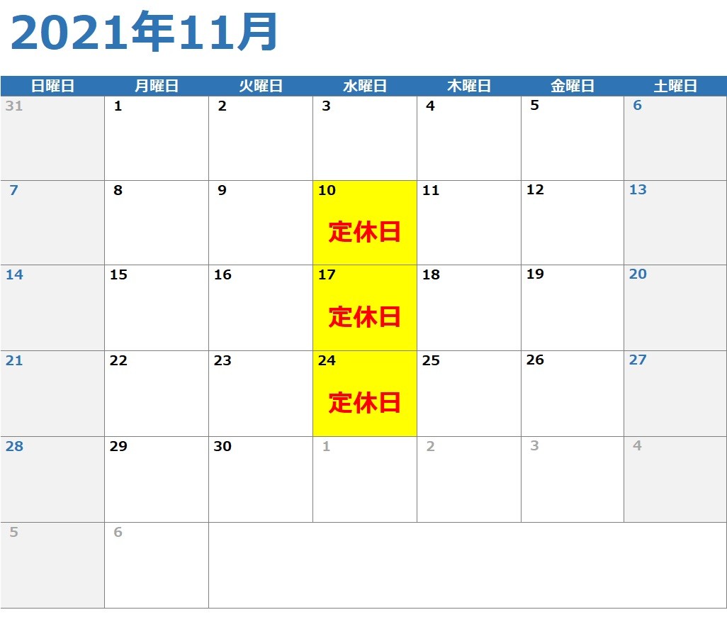 2021年11月の定休日は