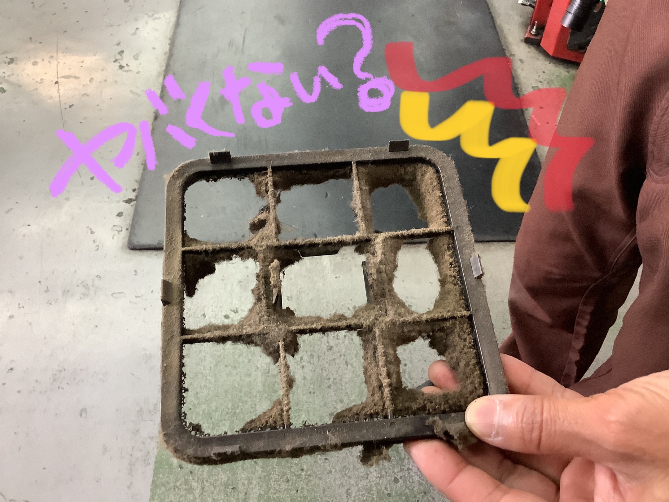 「エアコンフィルター」が・・・大破・・・笑