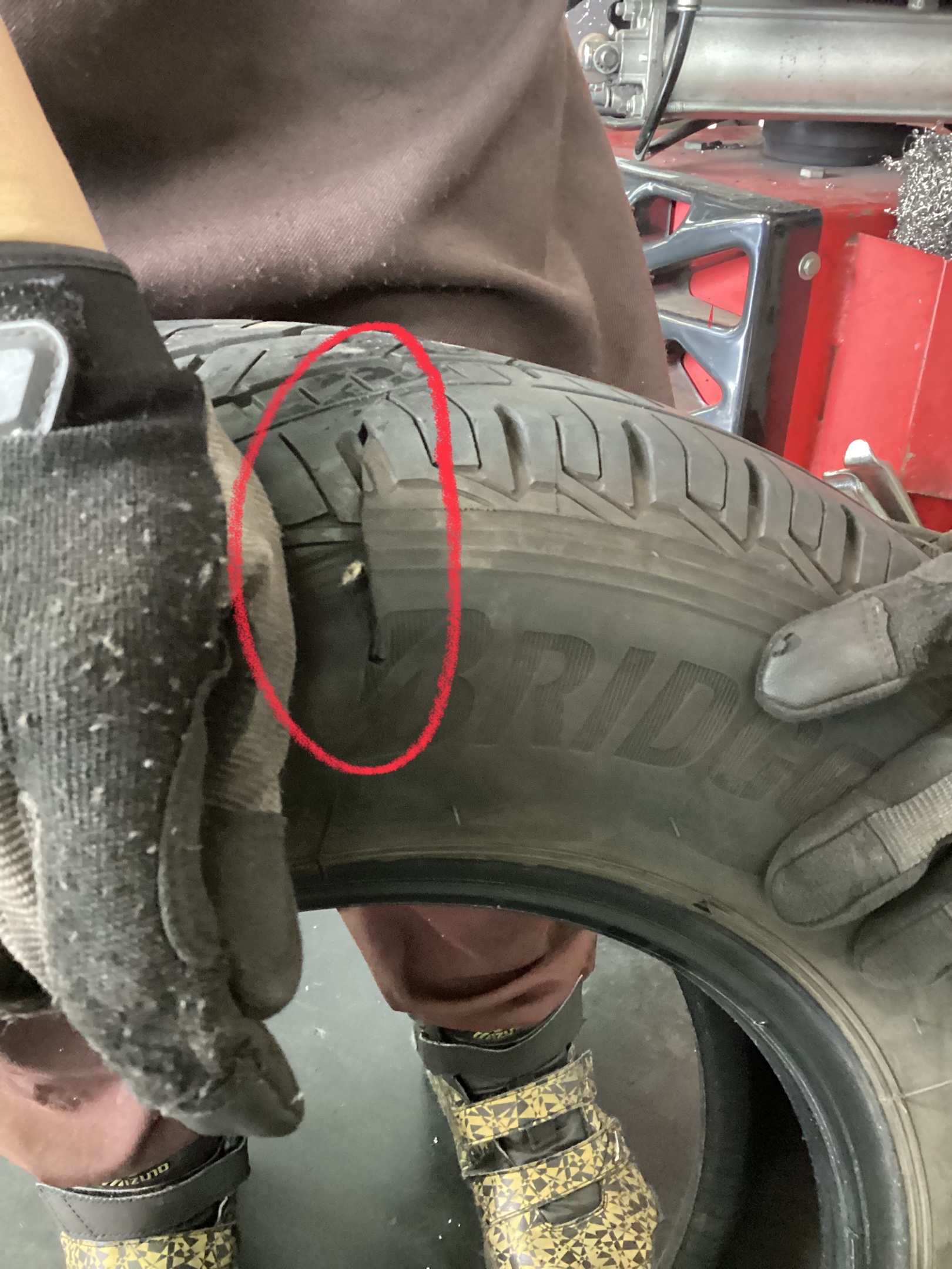 タイヤ館ではホイールを外し、タイヤの内側を確認することで