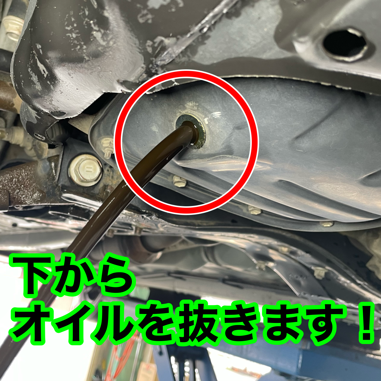 まずはドレンボルトを緩め、下からオイルを抜いていきます!