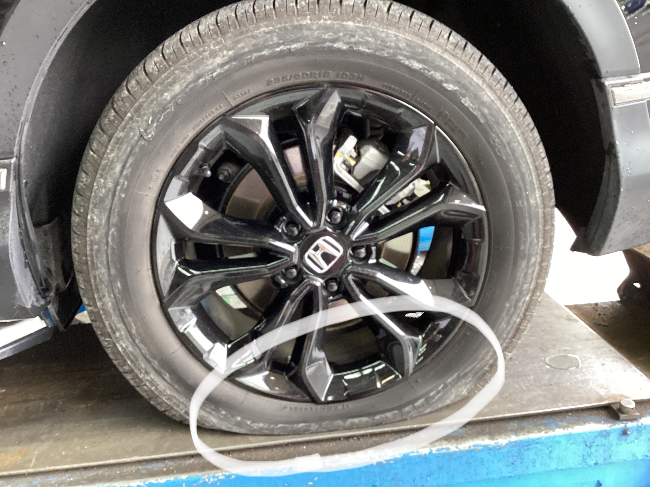 遠目で見てもパンクしているのがわかります。