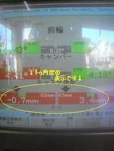 左前輪が0.7mm外に向いていて、右前輪が3.4mm内側に向いています。