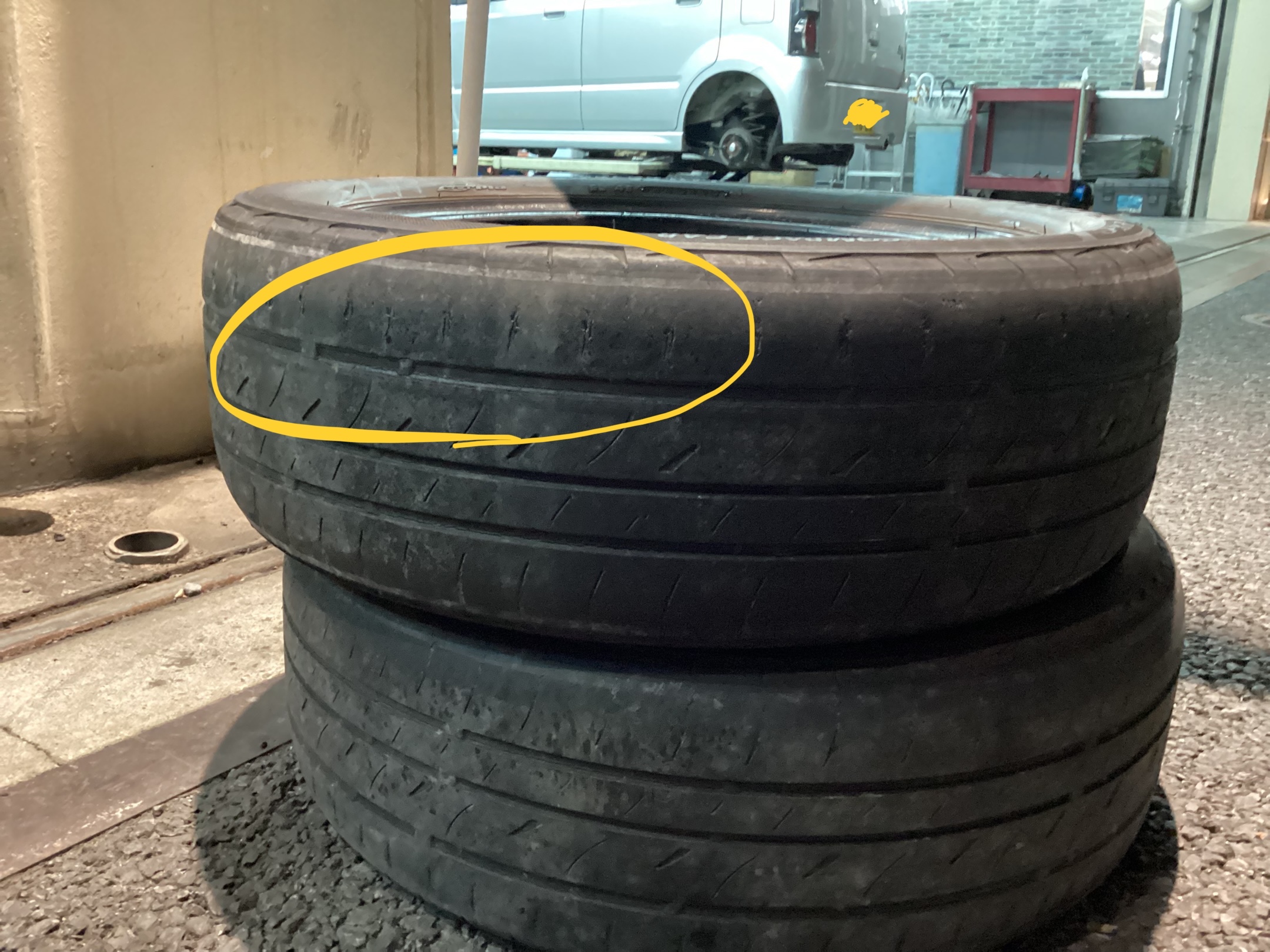ここで外した古いタイヤを見てみましょう。
