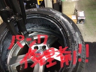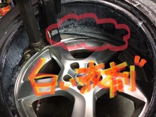 タイヤの中に白い液剤が・・・。