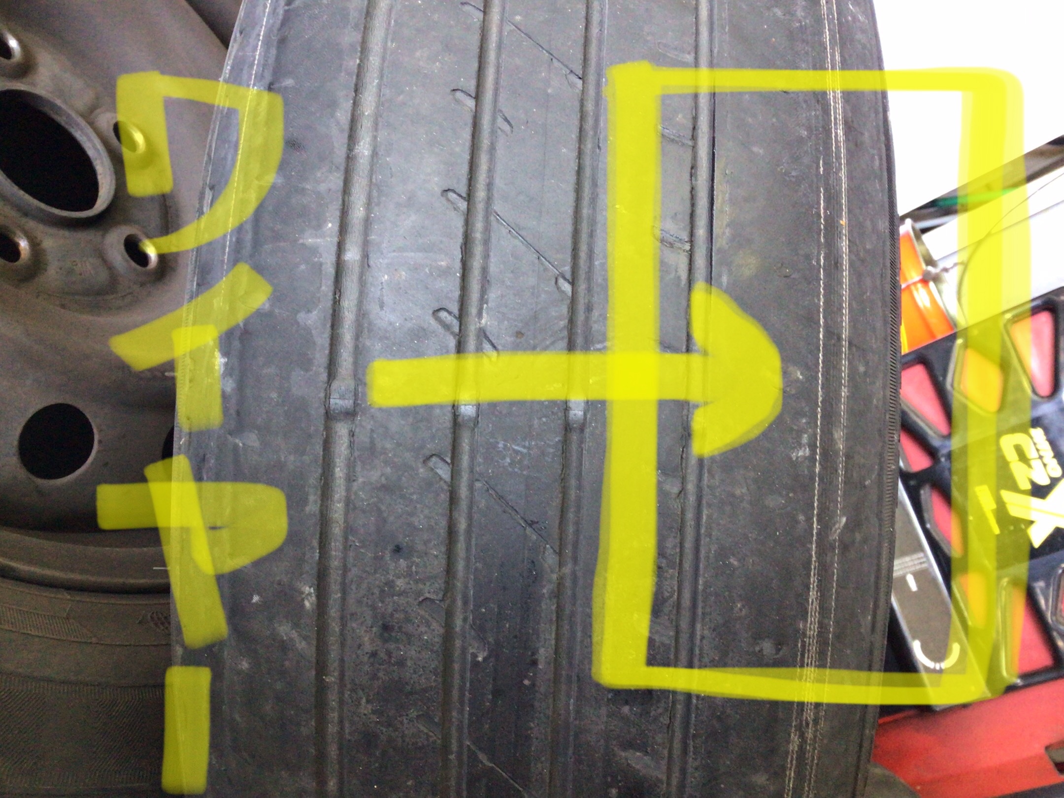 タイヤセンターは溝が残っていて