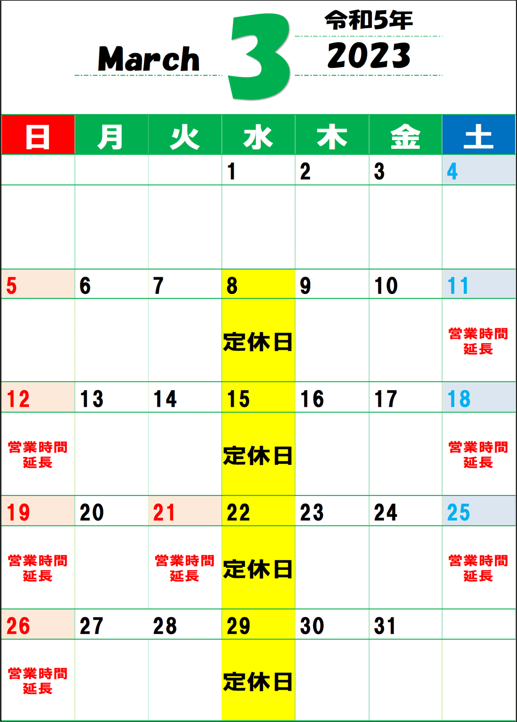 ※平日の営業時間は変わりませんので