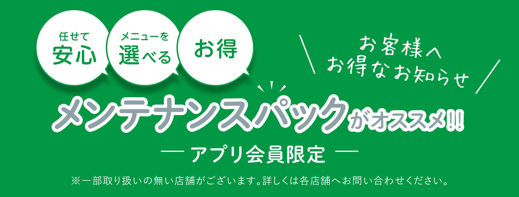 メンテナンスパックがオススメ! -アプリ会員限定-|タイヤ館 (taiyakan.co.jp)