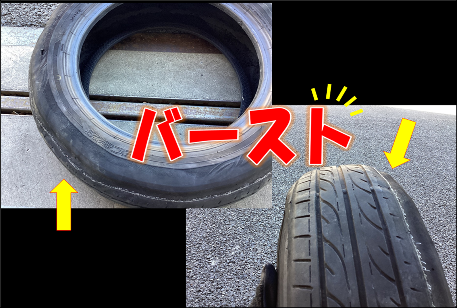 バーストしていないタイヤも