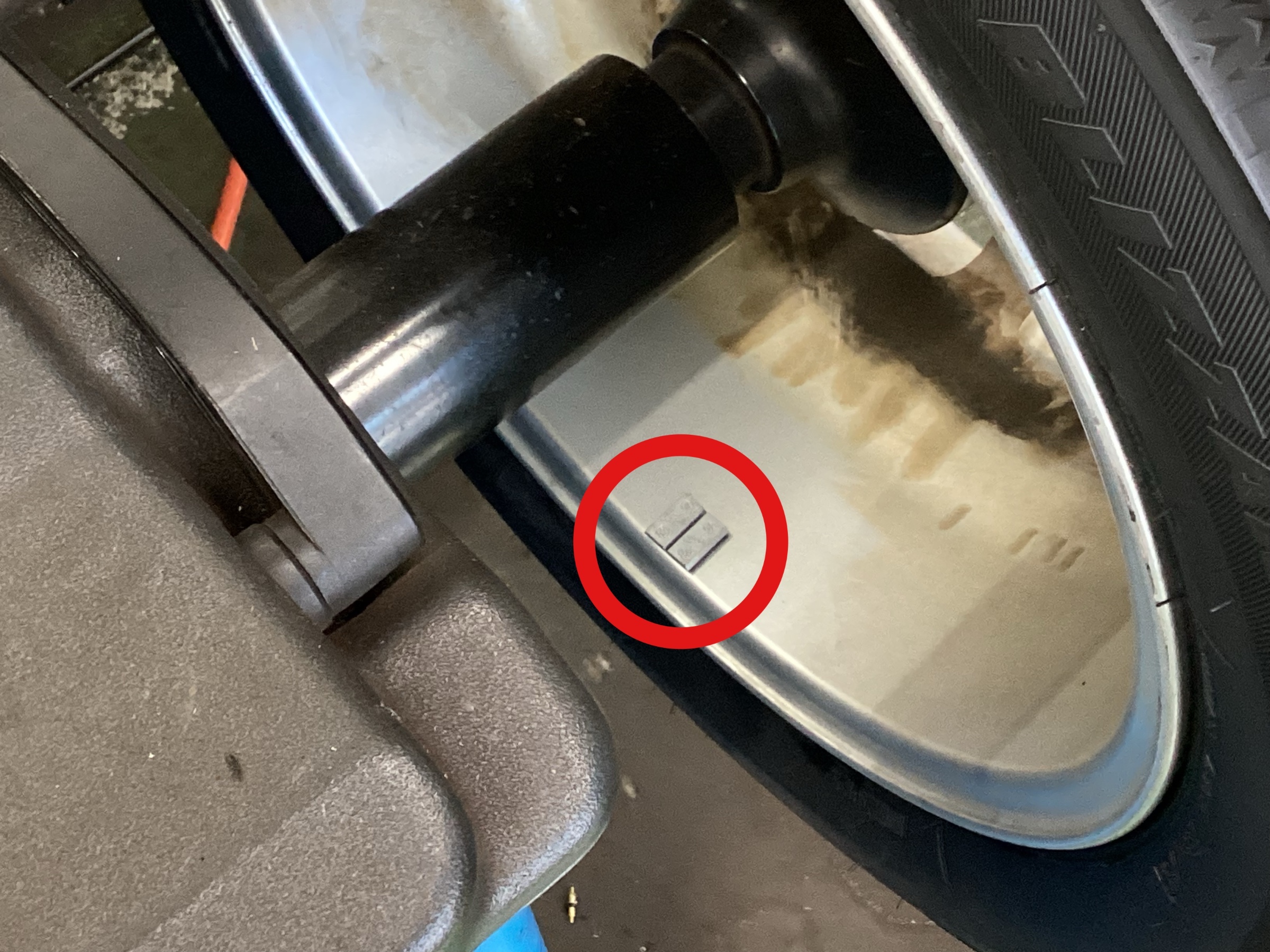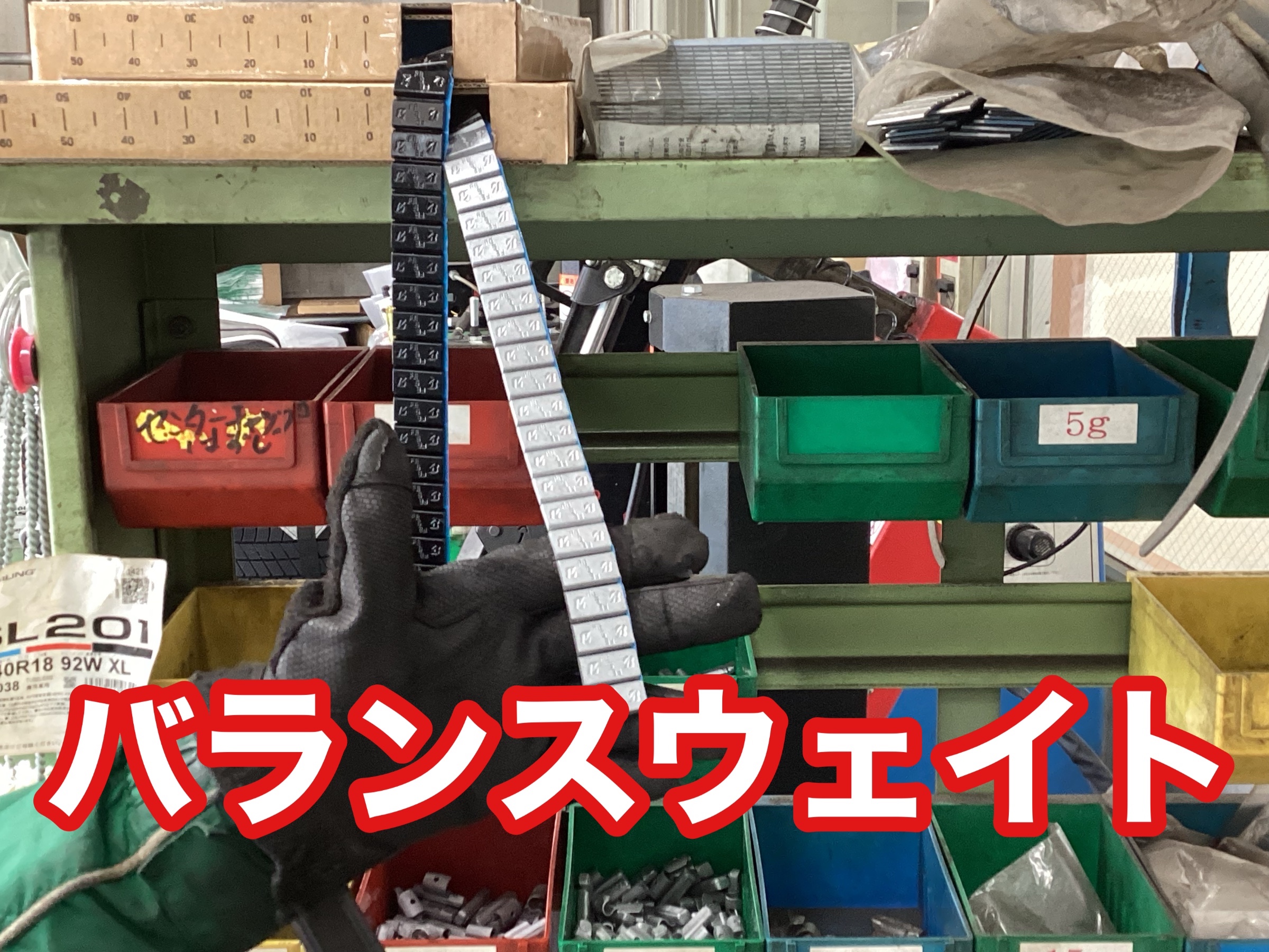タイヤとホイールが回転しているときの重さの偏りをなくしていく作業になります。