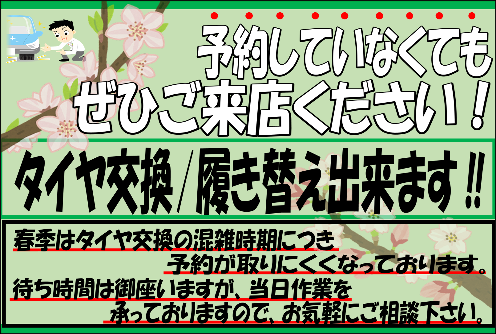 「今日タイヤ履き替え・交換をしたい」