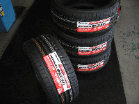 ①ランフラットタイヤ(RFT)。245/40R18.レクサスSC用です。「サイド補強型タイプ」と言って、通常のタイヤよりサイドのゴムが分厚くパンク時もタイヤが潰れず安心!
