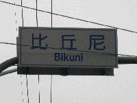 ②前方の比丘尼(びくに)交差点手前に案内看板が出てきます。