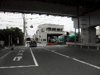 ①比丘尼(びくに)交差点を左折すると、すぐ真上に関越道の橋桁が見えます。そして関越道の橋桁をくぐったらすぐ右折です。