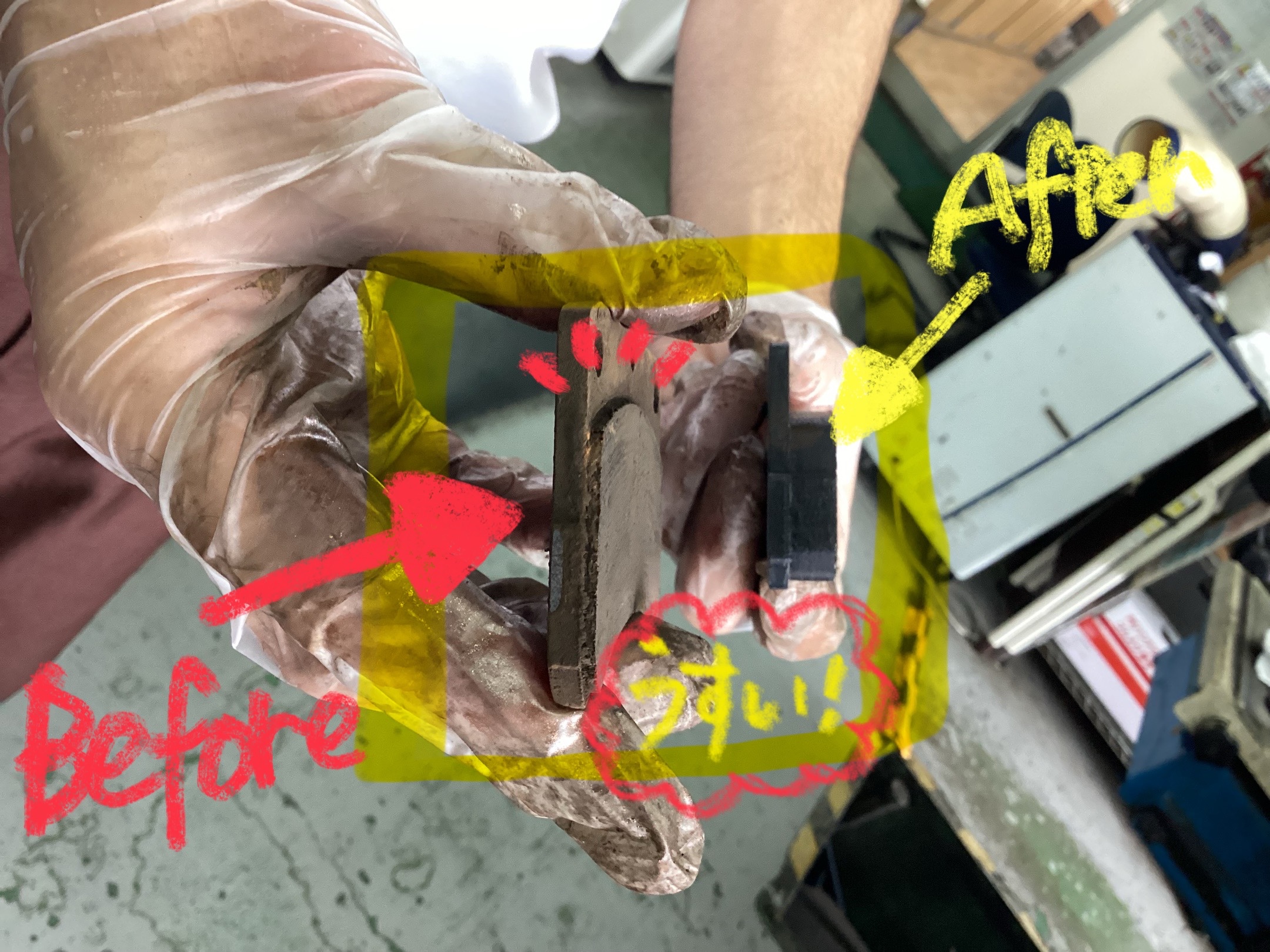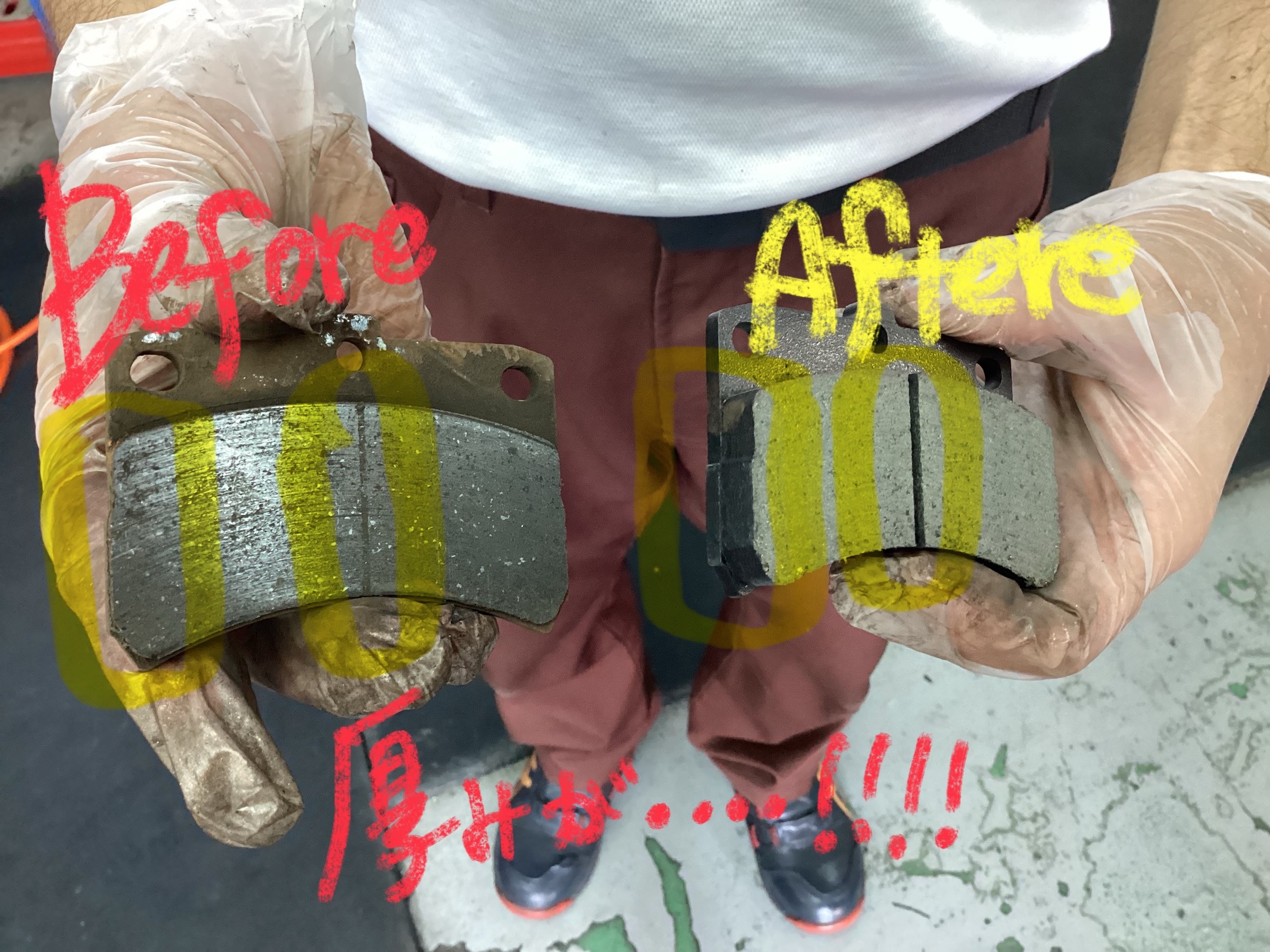 ←左側が交換前のパッド