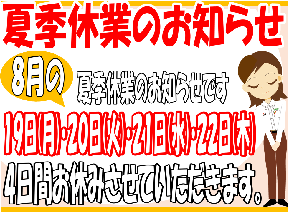 本日から「夏季休業」になります。